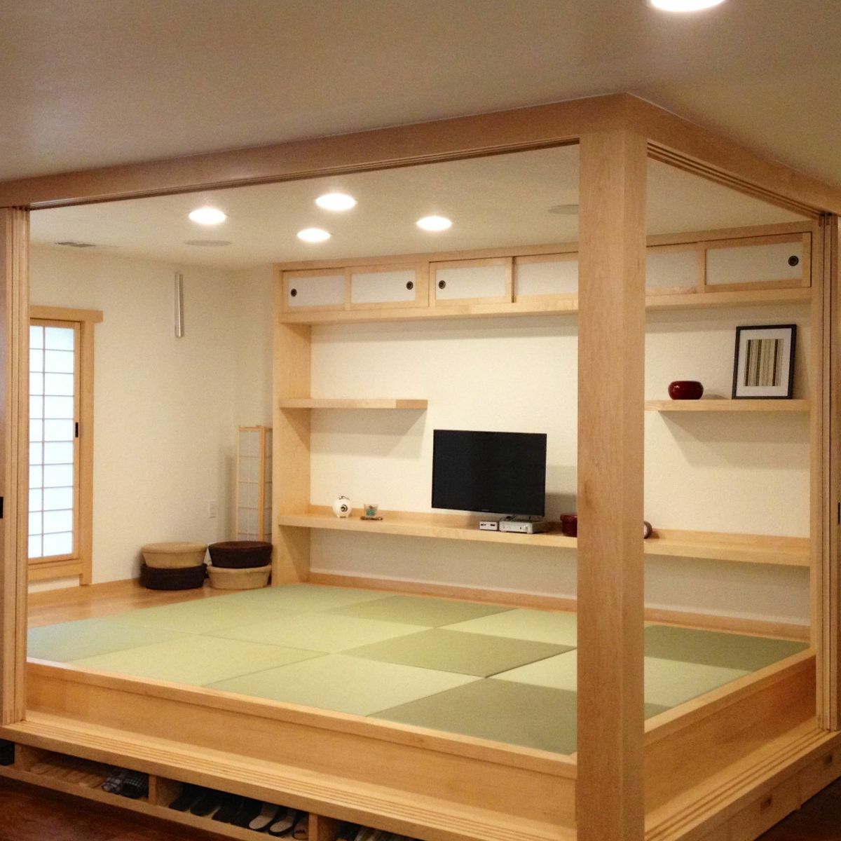 「畳を端から並べてみたけど、微妙に長さが足りなくて、少し隙間が空いてしまったな…。」